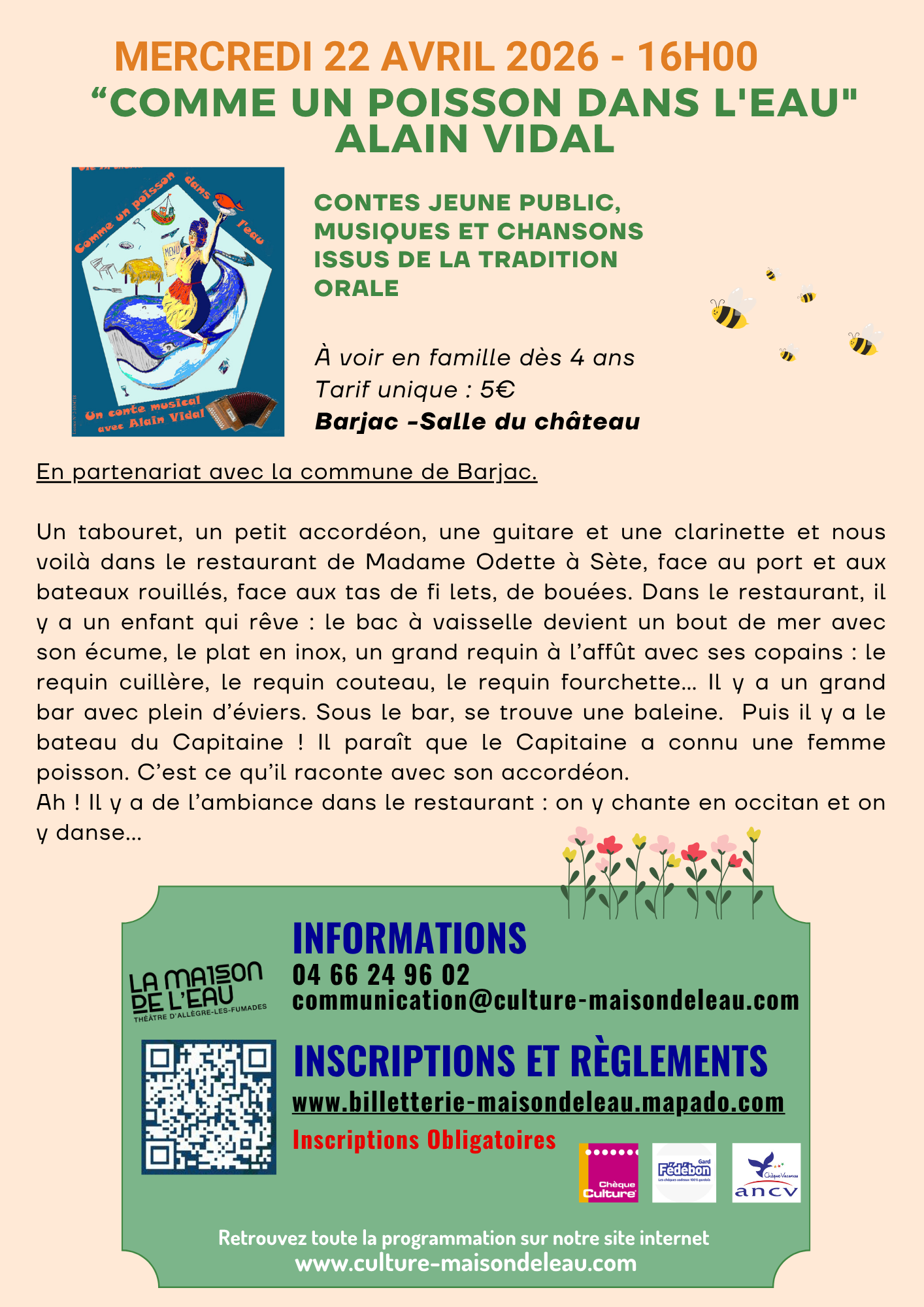 Informations au 04.66.24.96.02 ou communication@culture-maisondeleau.com